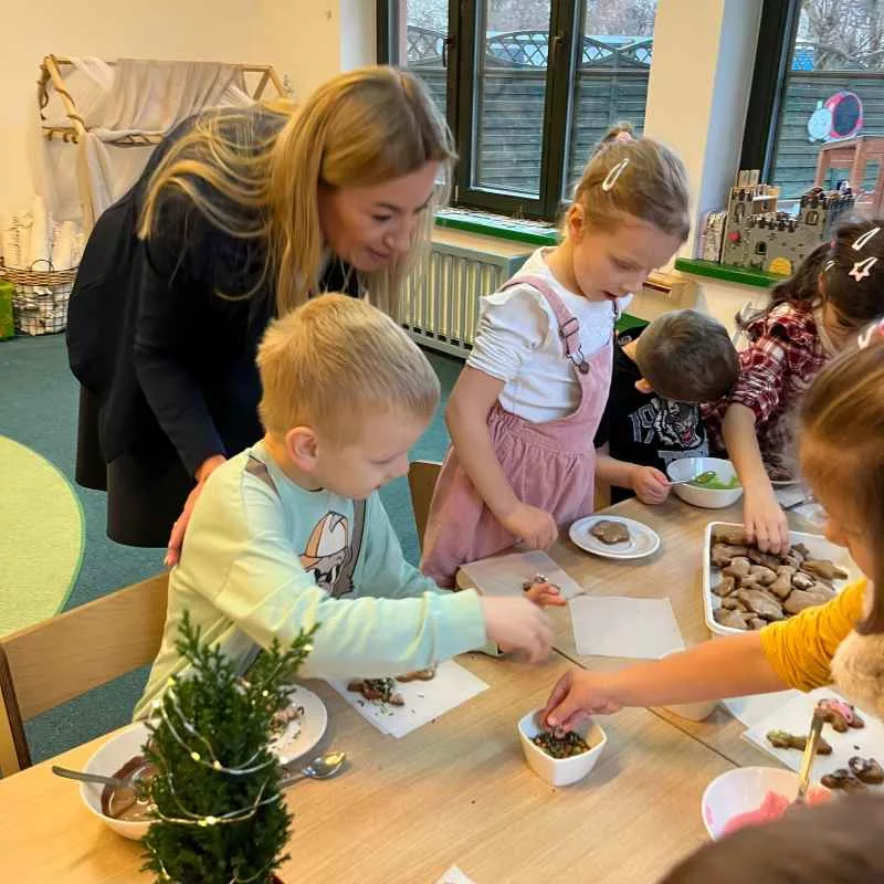 W Plastusiu praktyczną gościnność rozpoczęliśmy od wizyty Świętego Mikołaja. Następnie w ramach przedszkolnych projektów zaprosiliśmy rodziców na wspólne wydarzenia co nie tylko jest naszą tradycją ale przede wszystkim formą współpracy i budowaniem wspólnoty. Dzieci, przygotowując program artystyczny, świąteczne dekoracje czy drobne upominki, uczyły się, jak wyrażać wdzięczność i dbać o atmosferę spotkania. Podczas takich wydarzeń Plastuś staje się miejscem, w której gościnność przejawia się na wielu poziomach. Sale przedszkolne zamieniają się w przytulną przestrzeń pełną świątecznego klimatu, rodzice i dzieci uczestniczą razem w warsztatach, takich jak pieczenie pierników, tworzenie ozdób choinkowych czy wspólne muzykowanie. A symboliczne gesty-wręczanie rodzicom własnoręcznie wykonanych prezentów czy zaproszenie ich do wspólnego stołu to wyraz wdzięczności i gościnności, który na długo zostaje w pamięci dzieci i dorosłych.