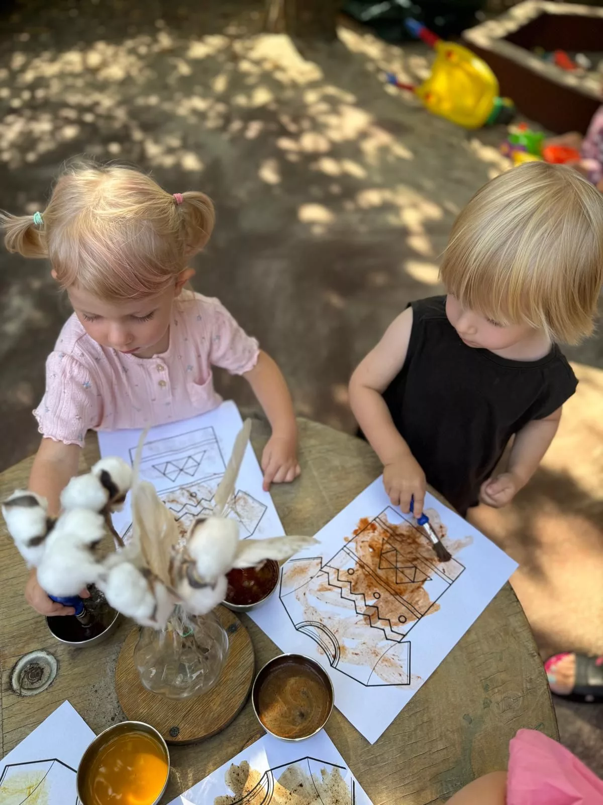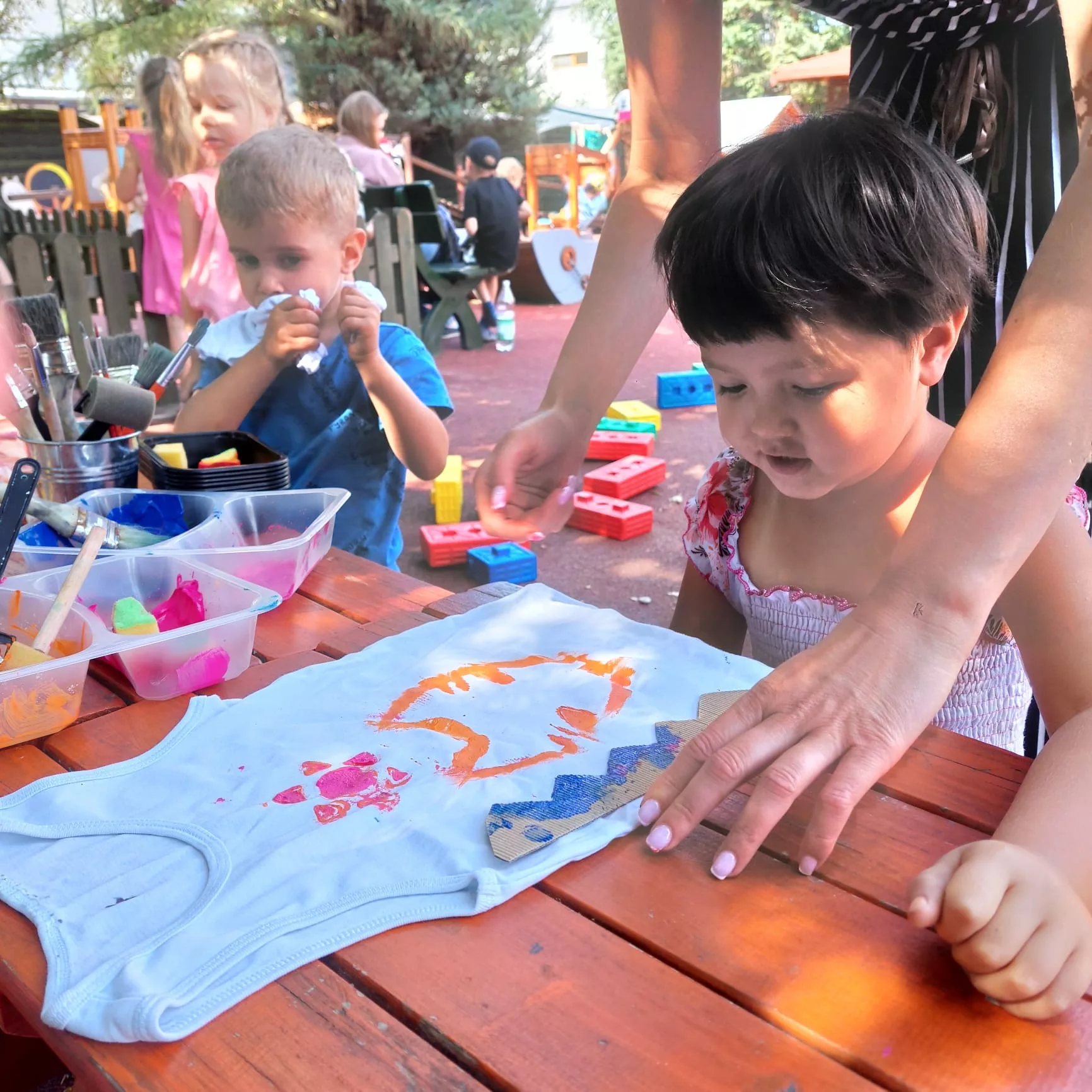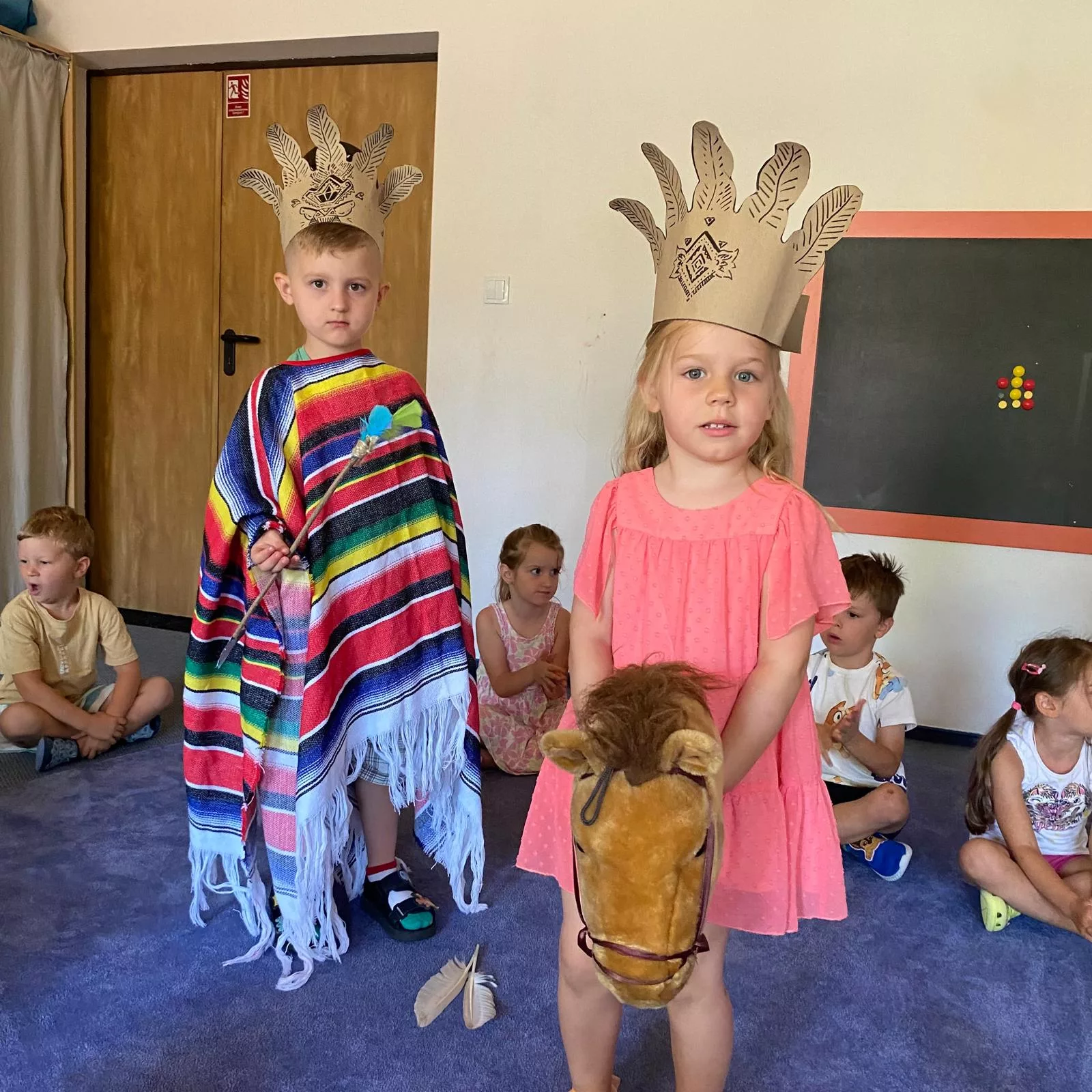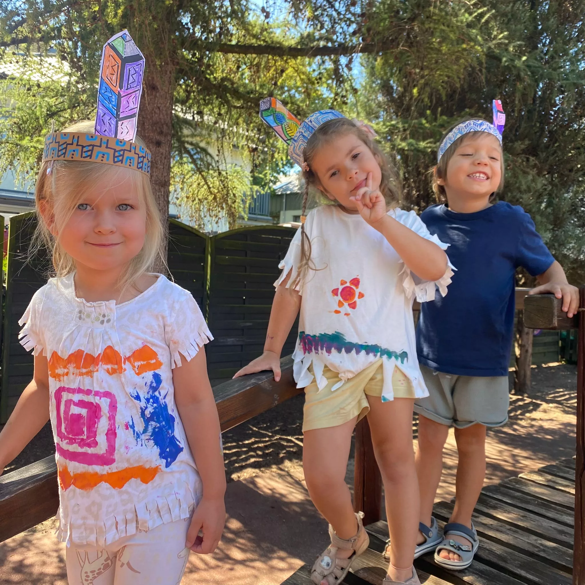 Na początku dzieci zapoznały się z totemami – charakterystycznymi dla Indian rzeźbami przedstawiającymi różne zwierzęta i duchy opiekuńcze. Jednym z najbardziej ekscytujących momentów były strzały z łuku. Pod czujnym okiem nauczycieli, przedszkolaki uczyły się, jak celnie strzelać do tarczy, co przy okazji rozwijało ich koordynację ruchową oraz zdolność koncentracji. Kolejnym punktem programu były zajęcia plastyczne inspirowane sztuką Indian. Dzieci tworzyły kolorowe wzory na płótnie, inspirowane indiańskimi wzorami geometrycznymi oraz naturalnymi motywami, takimi jak pióra, słońce czy drzewa. Dzięki temu maluchy mogły poczuć się jak prawdziwi artyści.Przedszkole zamieniło się w wybieg mody, gdzie Plastusiaki prezentowały stroje inspirowane tradycyjnymi ubiorami Indian. Myszki formowały z gliny małe miseczki i kubeczki, które następnie ozdabiały wzorami inspirowanymi indiańską sztuką. Powstały również zaklinacze deszczu. Dzieci uczyły się, jak za pomocą prostych przedmiotów, takich jak patyczki i koraliki, stworzyć instrumenty imitujące dźwięk padającego deszczu. Zabawa ta była połączona z opowieściami o indiańskich rytuałach, które miały na celu sprowadzenie deszczu.