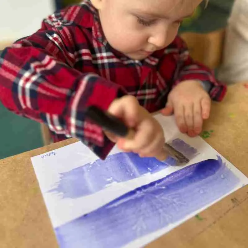Nasze najmłodsze żłobkowe Plastki uwielbiają sensoryczne zabawy i dzielnie ćwiczą małe rączki podczas prac manualnych .