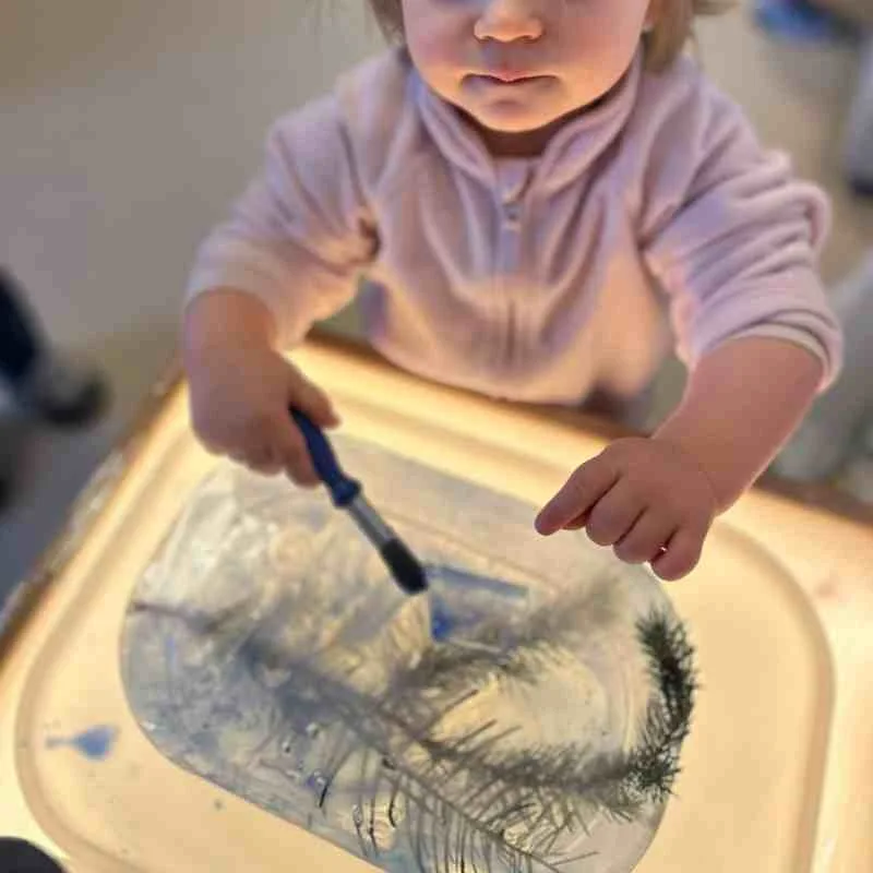 Wystarczy lód, gałązki, farby i trochę światła na zimowe eksperymentowanie i fantastyczną wielozmysłowa zabawę.