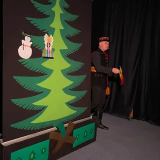 Tradycyjnie w grudniu oglądaliśmy spektakl świąteczny „Choinka”. Przedstawienie było inspirowane łowickimi wycinankami ludowymi oraz opatrzone pięknymi piosenkami stylizowanymi na ludowe melodie. Występujący w nim bohaterowie byli dość nietypowi. Mianowicie, były to zabawki choinkowe, które szukały swojego miejsca na ponad dwumetrowym drzewku. Pytania, które zadawał główny bohater – Bałwanek, pozwoliły nam odkryć prawdziwy sens choinkowych dekoracji oraz wprowadziły nas w cudowny, świąteczny nastrój.