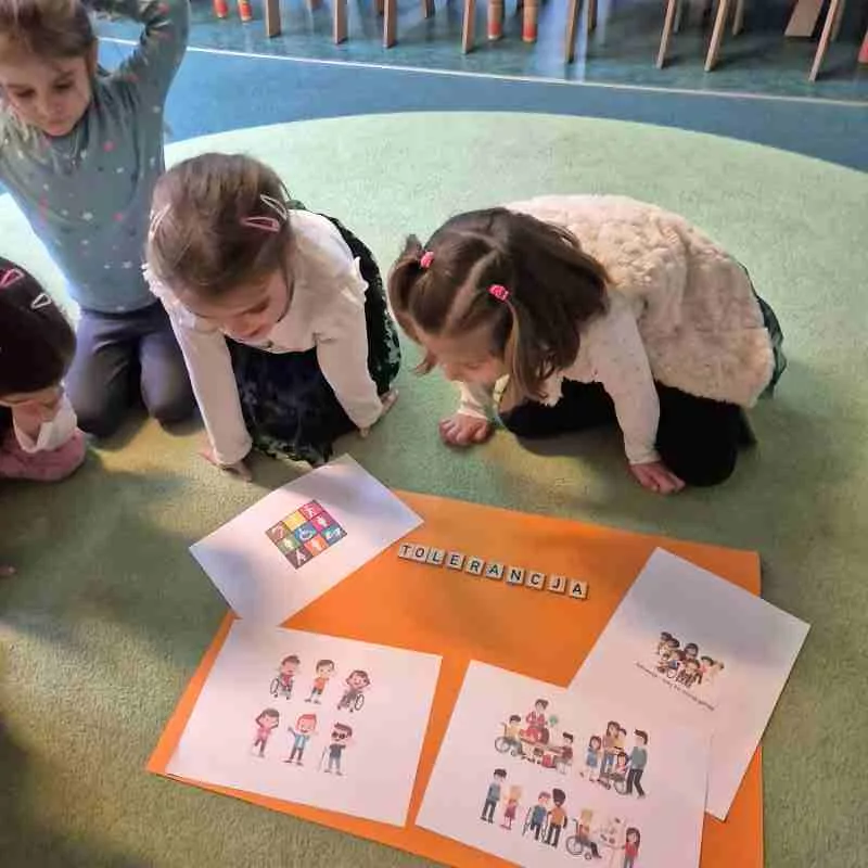 W styczniu rozmawialiśmy o tolerancji. Dzieci kształtują swoje postawy społeczne poprzez codzienne obcowanie z rodzicami, opiekunami, członkami dalszej rodziny, a także nauczycielami i rówieśnikami. Głównym celem w realizacji tego tematu było uświadomienie dzieciom, że tolerancja jest wartością moralną, wskazówką jak traktować siebie i innych ludzi, by nie naruszać swojej, ani cudzej godności. Bo tolerancyjnym jest ten, kto potrafi uszanować odmienne od własnych zwyczaje, upodobania czy wygląd.