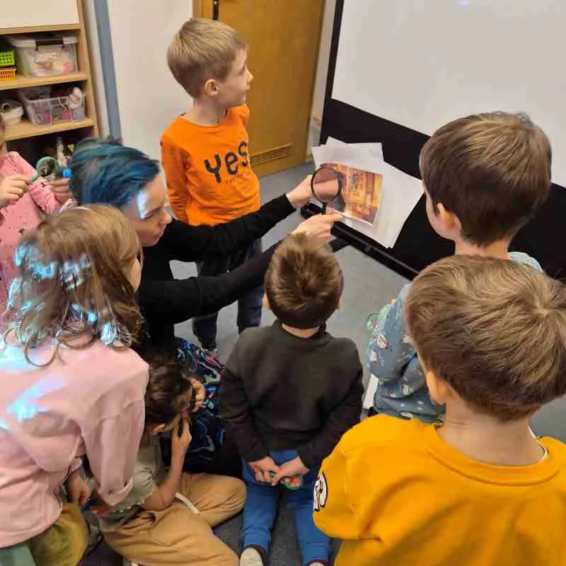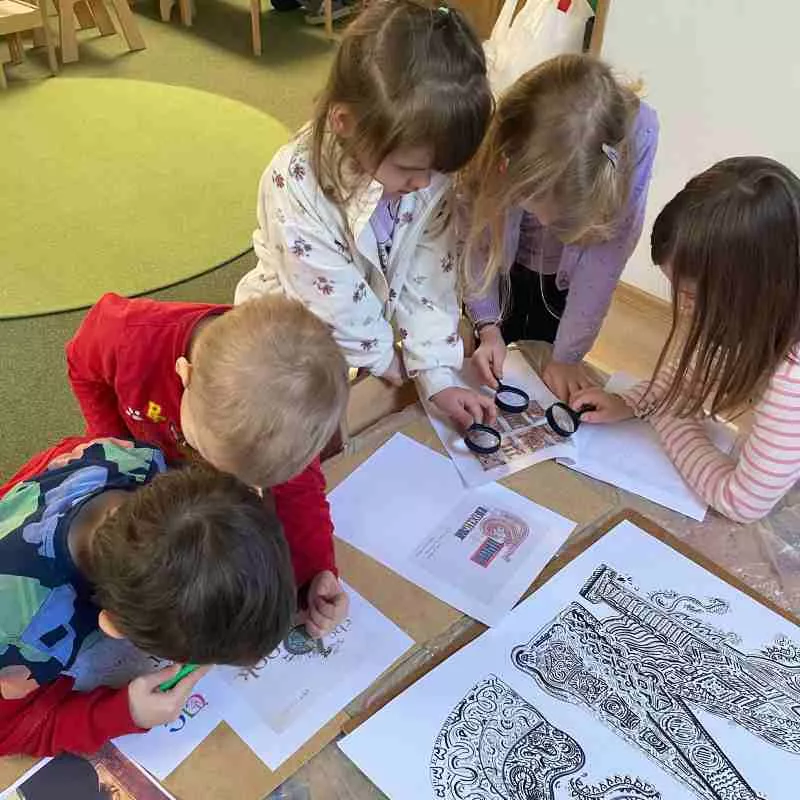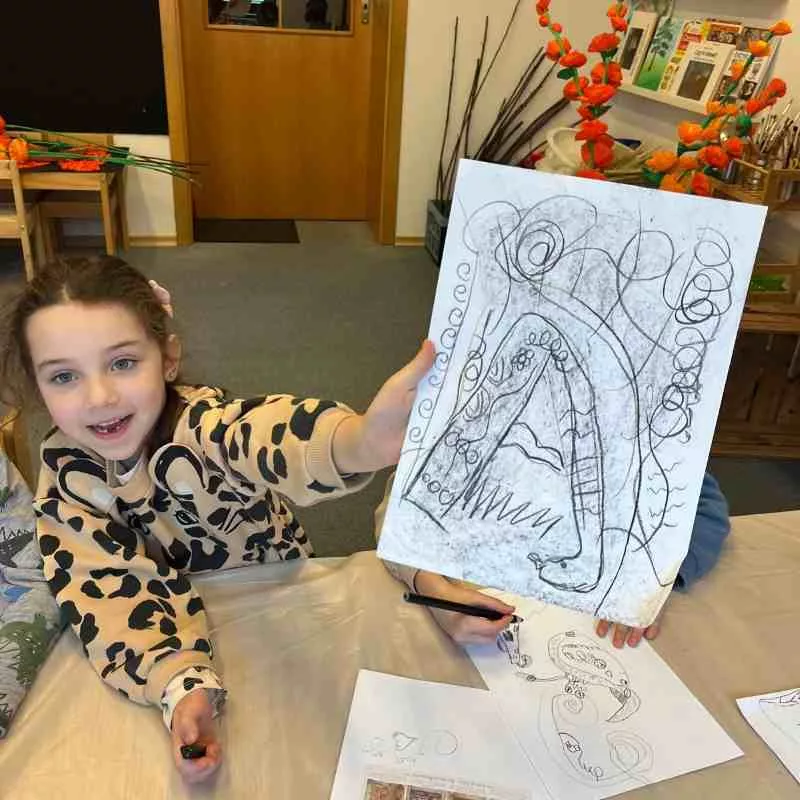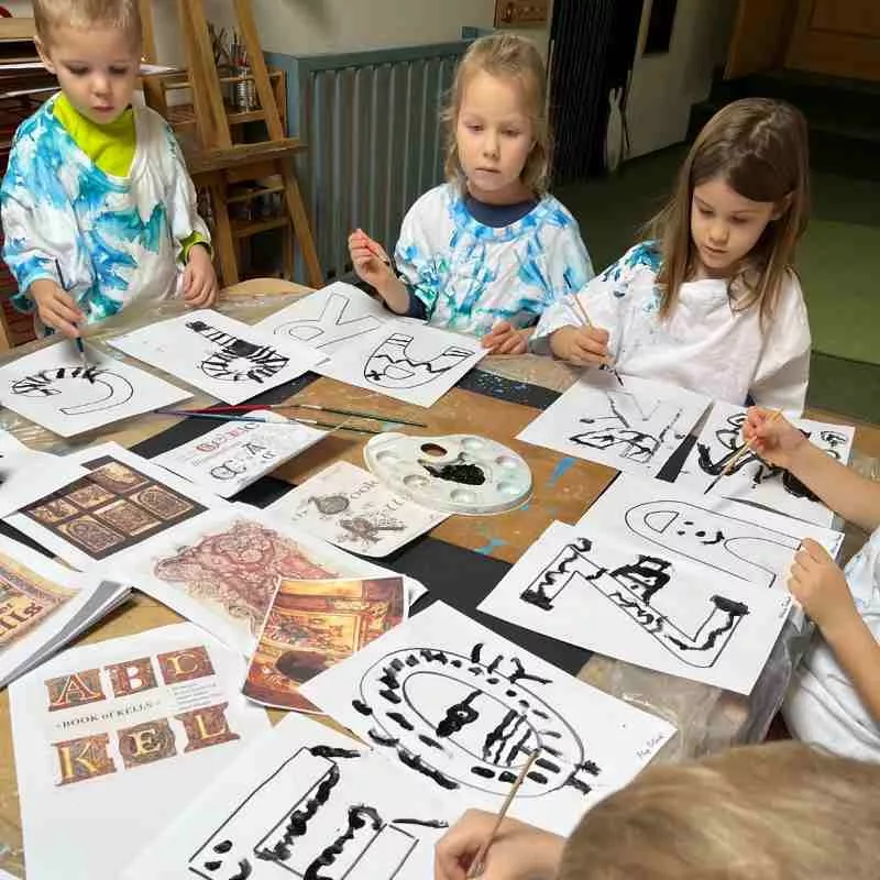 W lutym na sztuce zgłębialiśmy tajniki Celtyckiej Wyobraźni. Starszaki dowiedziały się jak powstał jeden z najpiękniejszych Cudów Świata –   Manuskrypt z Irlandii „Księga  z Kells”. Poznały pięknie iluminowany celtycki alfabet i szukały podobieństw do znanych liter.